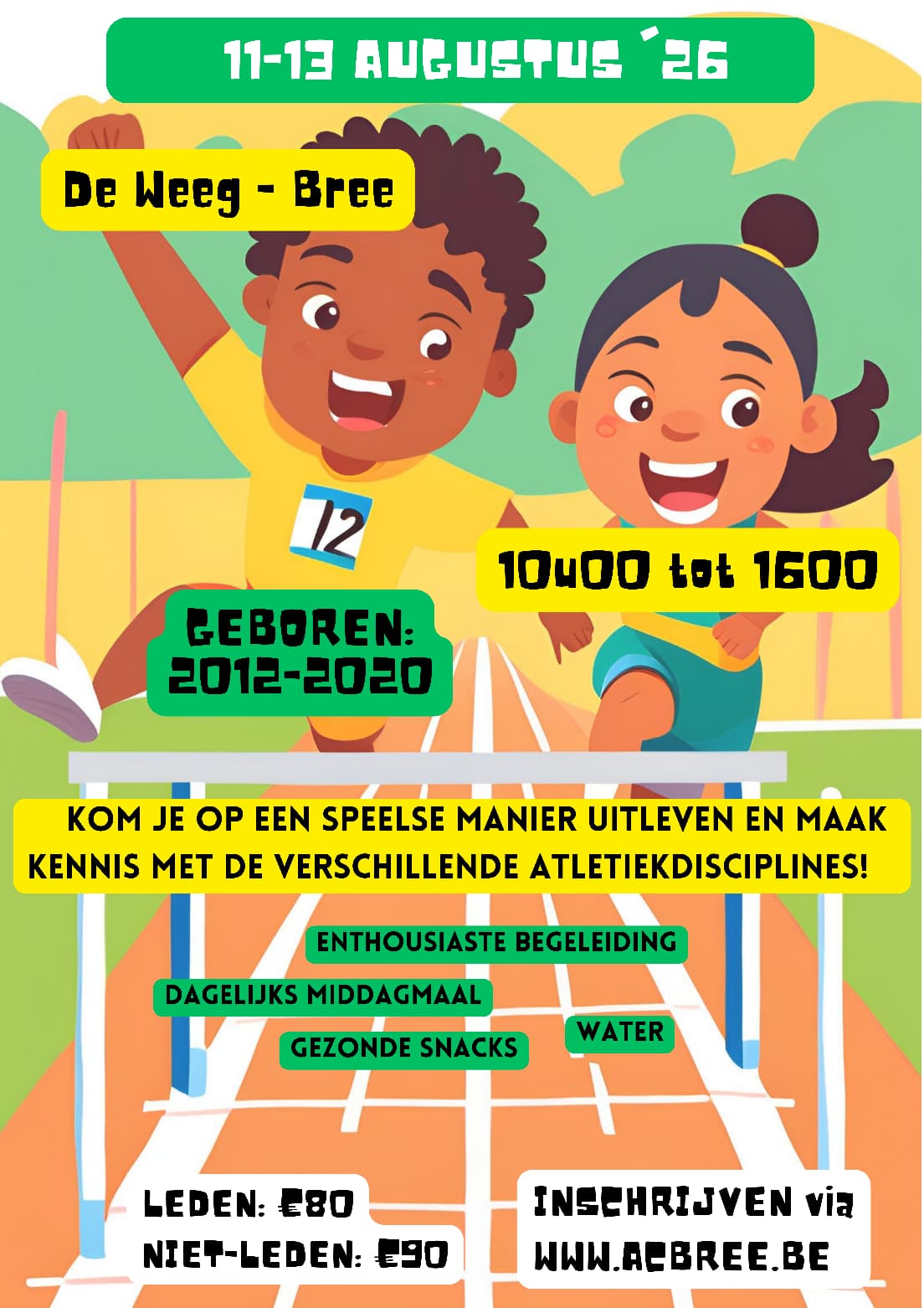 Ben je klaar voor een zomer vol atletiek? Houd dan 12, 13 en 14 augustus alvast vrij in je agenda! Wij organiseren dan ons jaarlijkse zomerkamp. Meer info en inschrijven volgt binnenkort.